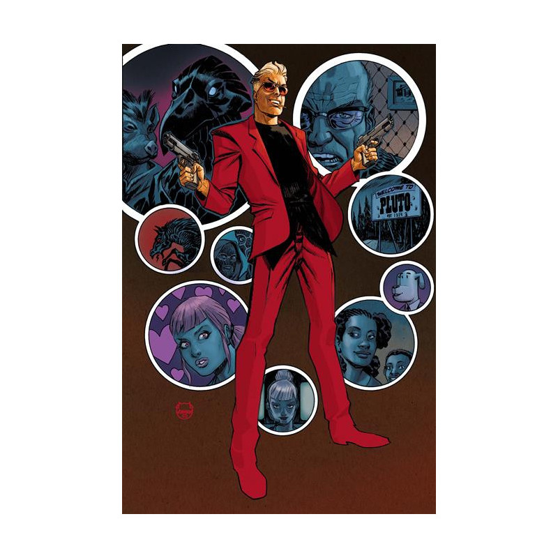 KYLE STARKS AND STEVE PUGH TAKE ON A HITMAN IN TROUBLE! Professional hitman Eddie Stallion has messed up. He's accidentally robbed the Raven, a high-ranking boss of the international cabal of assassins the Menagerie, of which Eddie is a member...or he was. Now with a price on his head, Eddie chooses to hide in the one place everyone knows he'd never go...the small midwestern town of Pluto, home of his estranged father and known hard-ass George Stallion. Looking for safe harbor, Eddie instead finds his resentful father dying of cancer, old friends looking to collect that bounty, Menagerie assassins who have wandered into town, a cancelled newspaper comic-strip creator turned local crime lord, and oh yeah, his childhood first love, too. Kyle Starks and Steve Pugh, the team behind Peacemaker Tries Hard!, present the story of a man-child assassin with some very grown-up problems. As Eddie grows more attached to the people of Pluto, he'll have to step in to solve those problems the only way a hitman knows how!