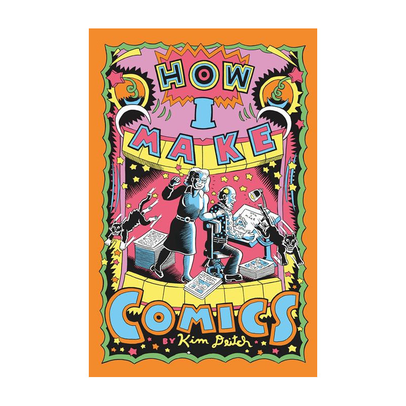 How I Make Comics is not just about how Kim Deitch makes comics, but about how comics made him. The book pinwheels between real autobiography and imagined comics history, but it begins in 1952 with a true story of eight-year-old Kim Deitch appearing in the audience of the Howdy Doody Show with eight-year-old Donnie Trump. Following Donnie's attempt to rig an election among the audience (no kidding!), Deitch relates a famous newspaper account of a diminutive wife who valiantly defends her equally diminutive husband in court, who just happens to be the inspiration of Harold Gray's Little Orphan Annie. Periodically, Kim asks his own wife for her critique and advice of the stories he's told so far, which he takes into account for future tales that include revenge-driven circus performers, fairytale mural painters, sordid comic book lore, comics readers creating real-life superheroes, impossibly old cats issuing supernatural judgments and inhabiting the bodies of humans, culminating in the real-life story of Kim's mother hitchhiking across country and being picked up by none other than Forrest J. Ackerman, the sci-fi, fantasy, and monster aficionado, who takes her to a convention where she meets a teenaged Ray Bradbury. How I Make Comics is a creatively kaleidoscopic, non-stop exploration of how Deitch's imagination turns ideas, influences, and irritations into comics in his inimitable style. Snippets of behind-the-scenes explanations of his notes and sketches expand into cascading short stories. Each section goes freewheeling from notion to notion, quietly building themes and reveling in its own wild-eyed imaginative capacities across 180 pages to form both an intimate graphic memoir and an eye-popping graphic novel. One of the most prolific artists of his generation, Deitch enters his 60th year of cartooning more inventive than ever and showing no signs of slowing down.