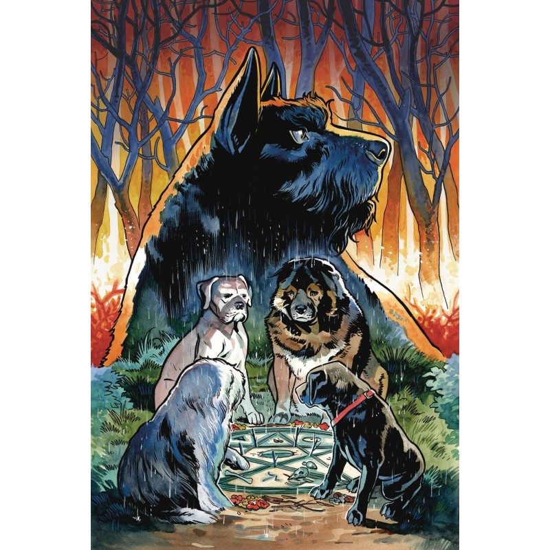 A heroic pack of canines known as the Wise Dogs set off on a mission to clean up a Pennsylvania corridor plagued by seemingly unrelated occult disturbances that include a fire salamander and a horde of mutant lurkers. A link is found among the various disturbances, leading our heroes to a mountain village inhabited by a survivalist witch-cult who have discovered the existence of a "Blood Lure" attracting occult forces, creatures, and many more terrors to Burden Hill!