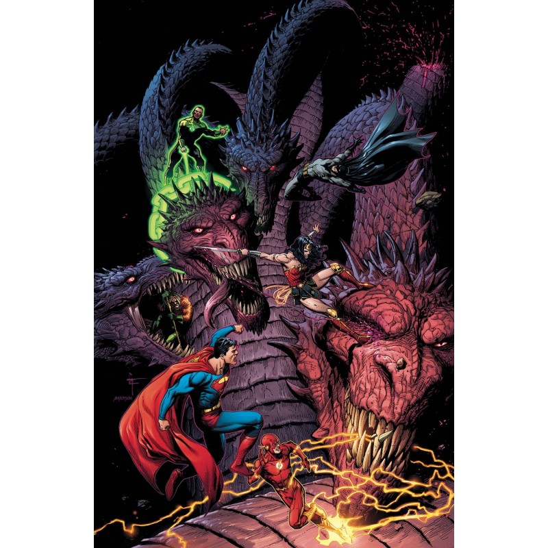 "Vengeance Is Thine" conclusion! The Justice League battles through the dreaded Pit of Tartarus, mythological prison to the most wretched creatures imaginable. Batman, Superman, the Flash, Green Lantern, Aquaman, and Wonder Woman must resolve their long-held grudges while they still can-and before the world burns. Yet even if they succeed, they must still defeat the monster that lives and rules at the dark base of Tartarus.