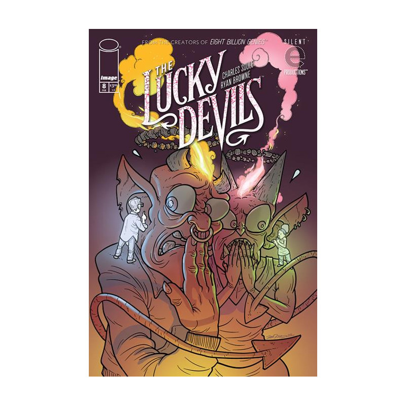 We are now in Hell's deepest level but one, the Eighth Circle, reserved for Fraudsters'the Big Old Liars. Rebellious devil Collar reveals his endgame: using his human Cam to turn our world into the Devils' Playground! Rake is on the edge of ascending to the highest levels of demonic society... if she can make her human Starr the Worst Person On EarthTM. It's mayhem of the highest order as THE LUCKY DEVILS rockets toward its epic conclusion!