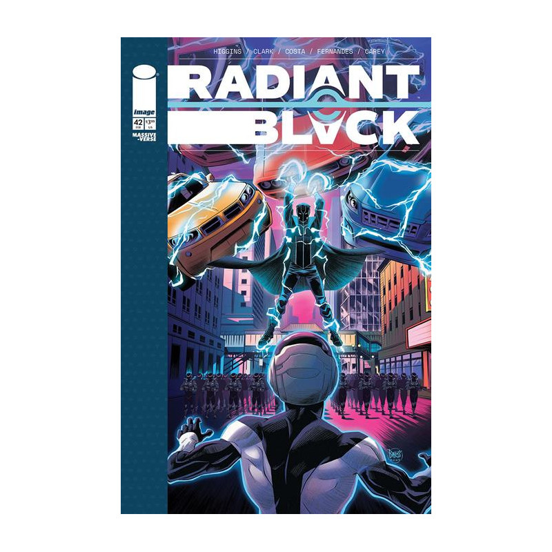 END OF STORY ARC As Jack Marlow's parade marches the streets of Chicago, RADIANT BLACK and **HORIZON **are set on collision course from which neither will emerge unscathed! Don't miss this 5th anniversary issue with an ending that once again will change RADIANT BLACK forever!
