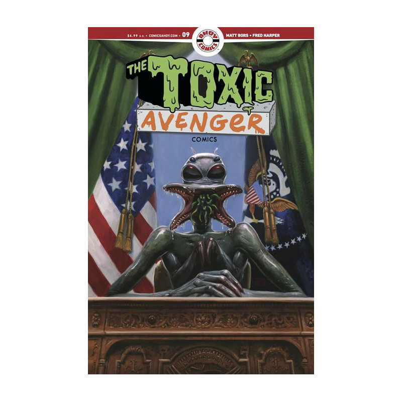 Continuing the most intense Toxie epic yet! Framed for the murder of U.S. President Young, the Toxic Avenger is confined under threat of permanent imprisonment in an isolation camp for mutations!