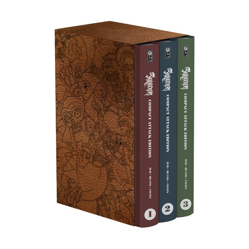 If you love swords, sassery, and a touch of black-hearted violence, then Skullkickers is the book for you! A trio of hard-headed mercenaries kill monsters and cause havoc in their endless search for money, fame, and adventure, from the lauded and ludicrous team of Jim Zub (Dungeons & Dragons, Conan the Barbarian) and Edwin Huang (Street Fighter), now in a book-friendly format perfect for new readers! This Skullkickers Compact Attack Edition slipcase collects all three volumes of the hit series that's 34 issues of glorious, skull-kicking action!