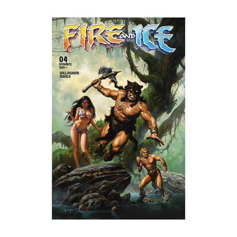 WHAT SECRETS WILL THE DEAD REVEAL? Even as she is transferring her powers to Prince Nekron, the grief-maddened sorceress Juliana casts one final spell to resurrect her firstborn son, Kaledan - who is about to discover that getting brought back to life isn’t as enjoyable as one might think. Meanwhile, having fought off the subhuman raiders, the Queen of Firekeep adds the warrior boy Larn to her expedition - now they just have to make it across a jungle overrun with enemy warriors and their tame monsters! Writer BILL WILLINGHAM and artist LEONARDO MANCO continue their mesmerizing exploration of Ralph Bakshi and Frank Frazetta’s primordial realm in the long-awaiting Fire and Ice #4 - featuring five fantastic covers from MANCO, JOSEPH MICHAEL LINSNER, MAHMUD ASRAR, JOE JUSKO, and DAN PANOSIAN!