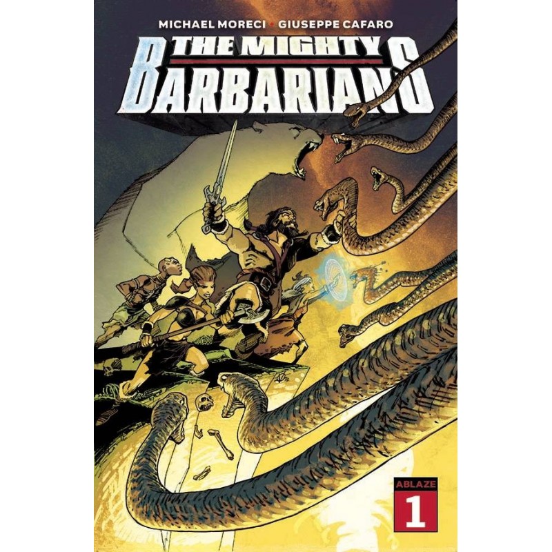 MIGHTY BARBARIANS #1 CVR A VATINE (MR) ABLAZE PUBLISHING (W) Michael Moreci (A) Giuseppe Cafaro (CA) Olivier Vatine From the writer of Barbaric comes the world-hopping, skull-crushing adventures of …